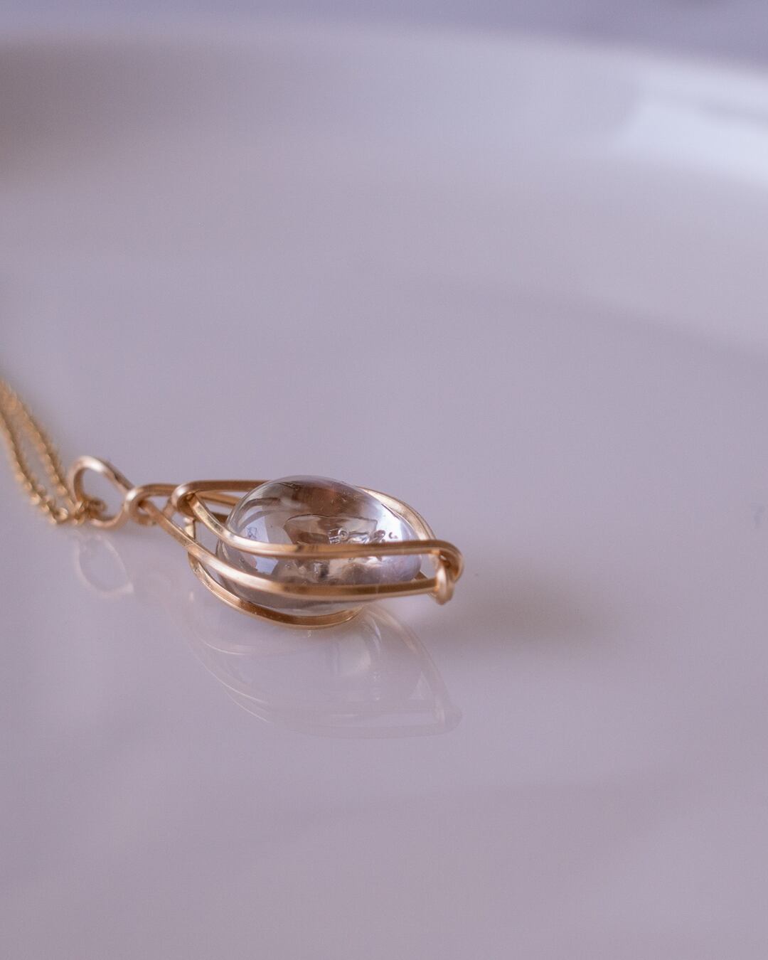 ハンドメイドのため、繊細な作りになっており、ワイヤー一つで石をとめておりますので、無理な力を入れるとはずれてしまう場合がございますのでご注意していただけると助かります。