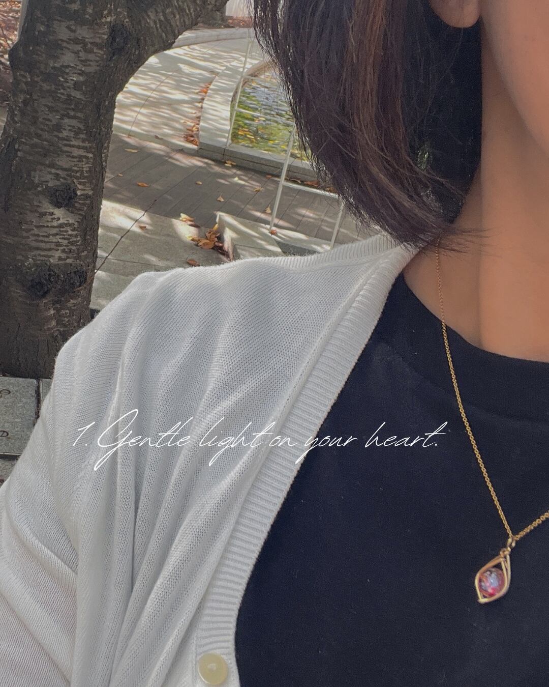 胸元にやさしく映える、赤い模様が印象的なクォーツ。