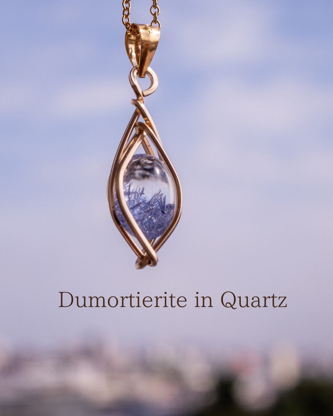 澄んだ空のかけらを閉じ込めたような、小さなデュモルチェライトインクォーツ。